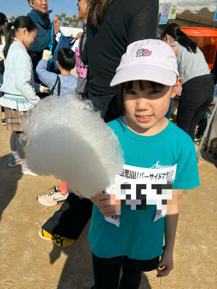 順位に納得がいかなかったようで、来年は10位以内に入る!と言ってました走った後のご褒美の綿あめ(笑)